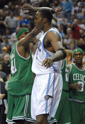 Dwight Howard had 24 points and 6 rebounds, while shooting 10-20 from the free throw line. Dwight had a stretch where he couldn’t make free throws down the stretch and that really concerned me because teams will use that to their advantage and hack when he gets to a certain spot down low. Also, while he was being played very physically by Brian Scalabrine and Kendrick Perkins down low, he got a little frustrated and shoved Scalabrine a bit, which resulted in a technical foul. I want Dwight to act mature like he has already showed us in the early years of his career. He is a good kid, and he needs to keep that demeanor on and off the court. Hedo Turkoglu made the big three pointers in high point of this game and finished with 16 points and 6 rebounds. Early on in the season, Hedo has showed he is confident and ready for a career year this season. He sees how much better his team is and worked hard to get into shape and stay in top shape throughout the off-season.