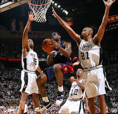I would like to see Cleveland go after the Spurs top three players, making the other guys score. The Spurs big three combined for 67 points- that’s all you need to hear to have an open jaw.